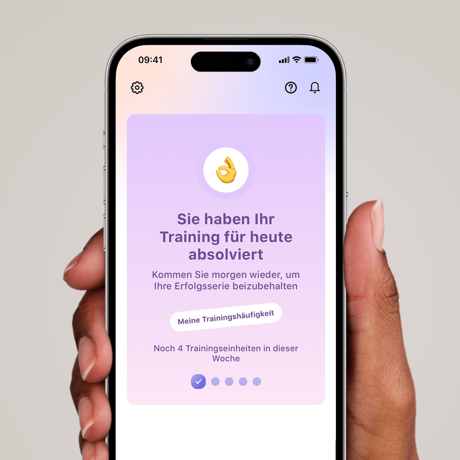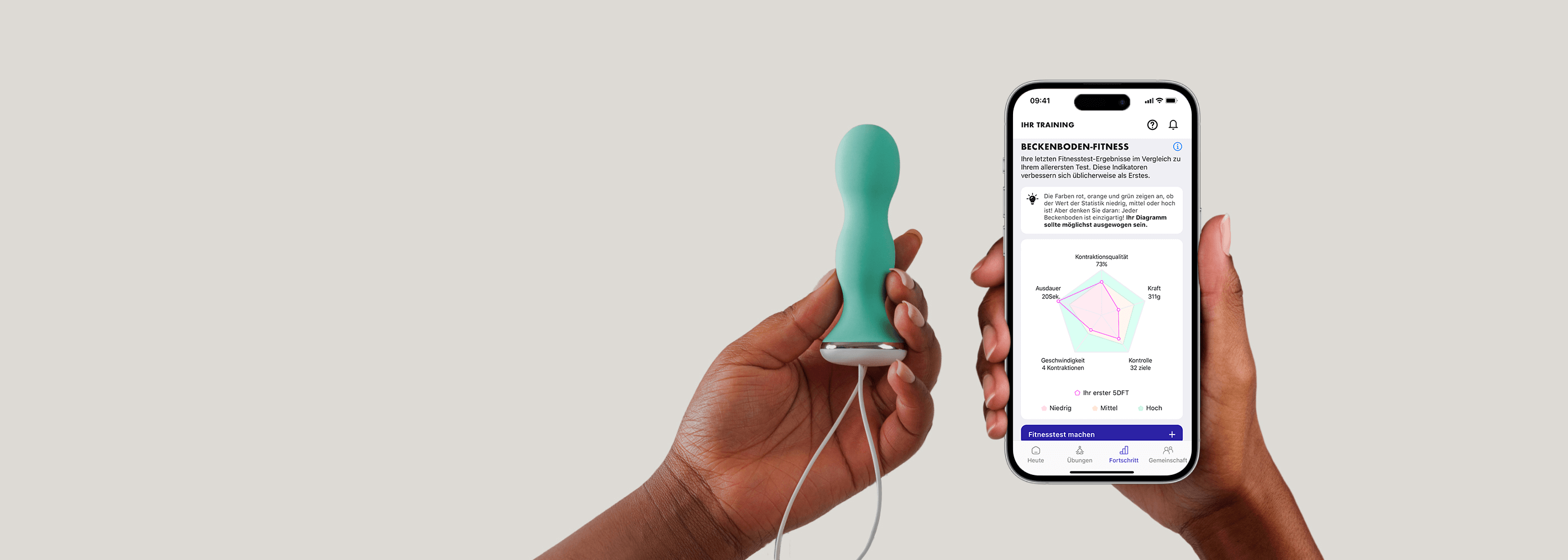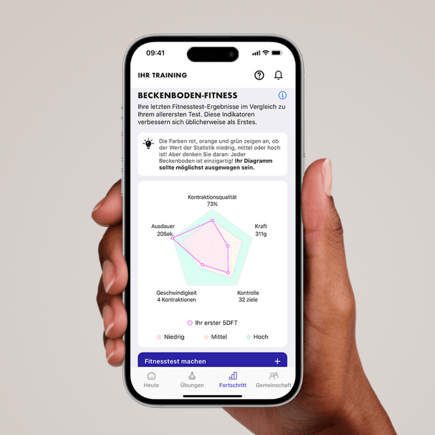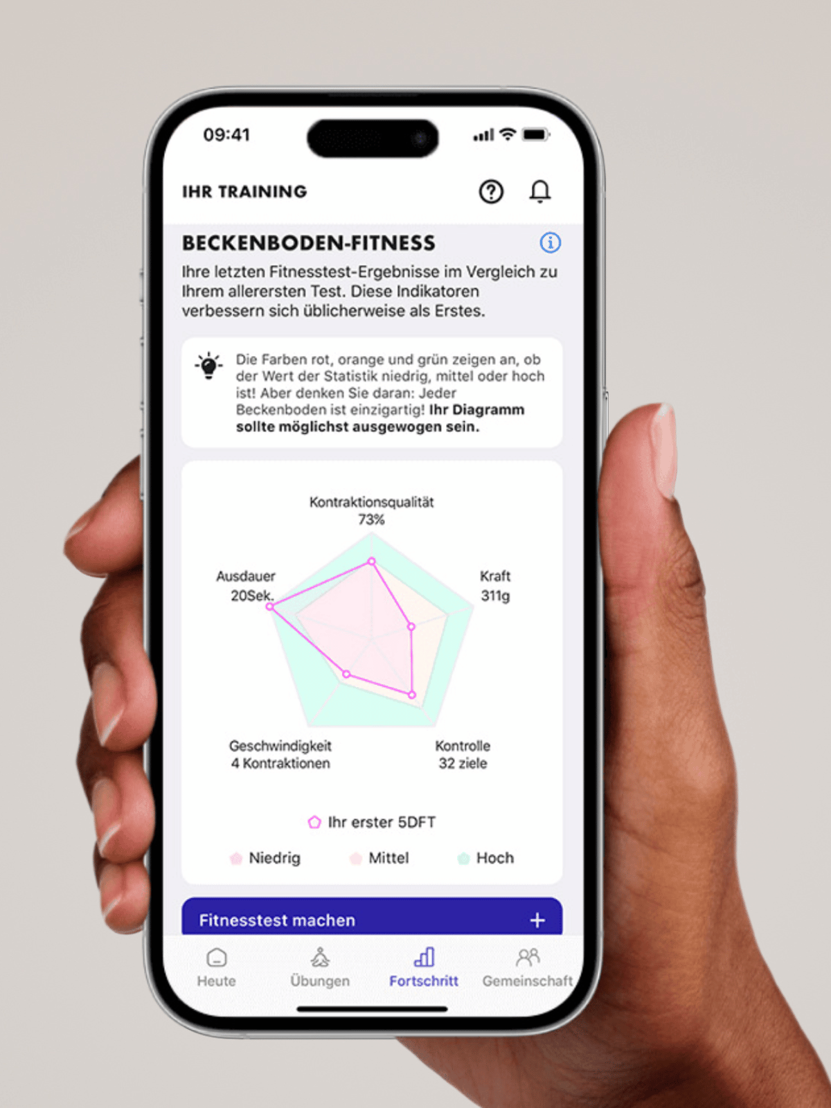 Unsere App liefert Ihnen ein gezieltes Beckenbodentraining mit maßgeschneiderten Programmen und verfolgt Ihre Fortschritte, sodass Ihr Erfolg in greifbarer Nähe ist.