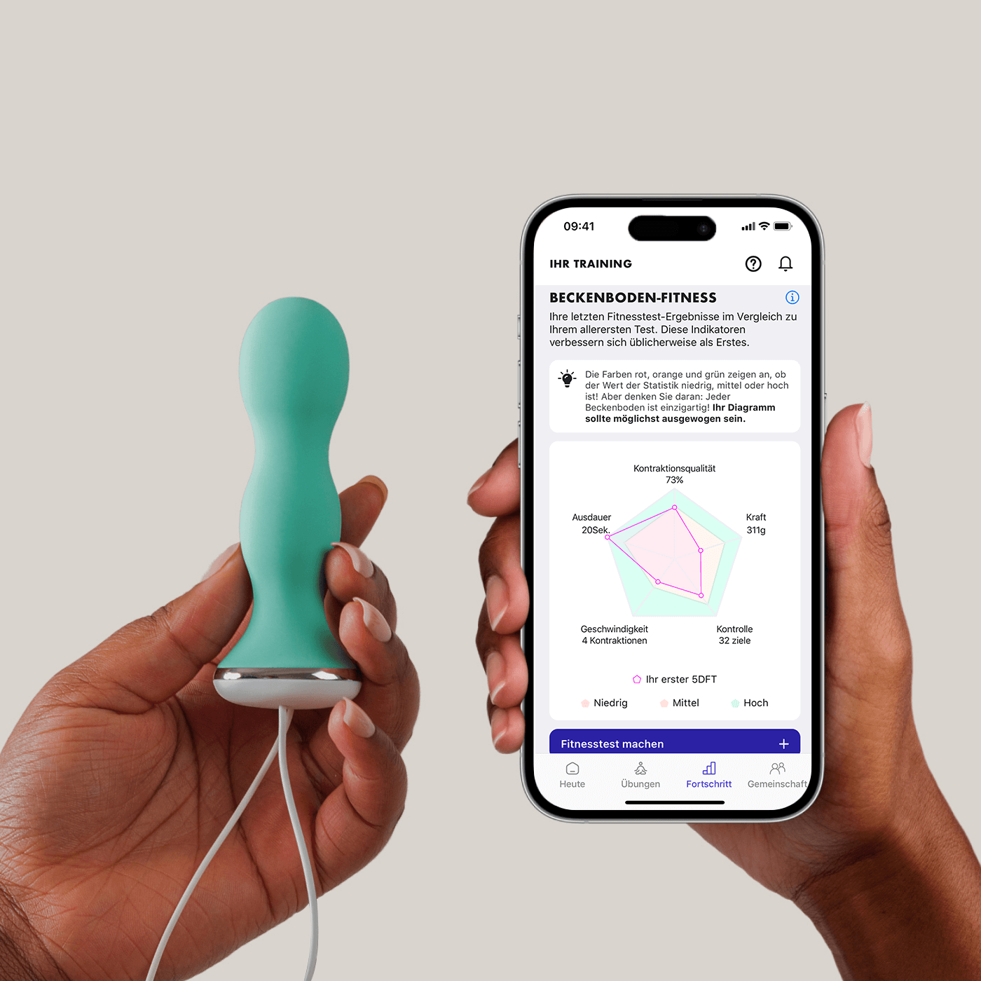 Sie möchten schnell deutliche Ergebnisse erzielen: Perifit Care+ ermöglicht es Ihnen, den Schwierigkeitsgrad der Übungen zu erhöhen, indem Sie sie im Stehen ausführen, und bietet mit seinen zusätzlichen Sensoren eine bessere Überwachung von Fehlkontraktionen. Aufgrund des anspruchsvolleren und präziseren Trainings können Sie schneller deutliche Ergebnisse erzielen.